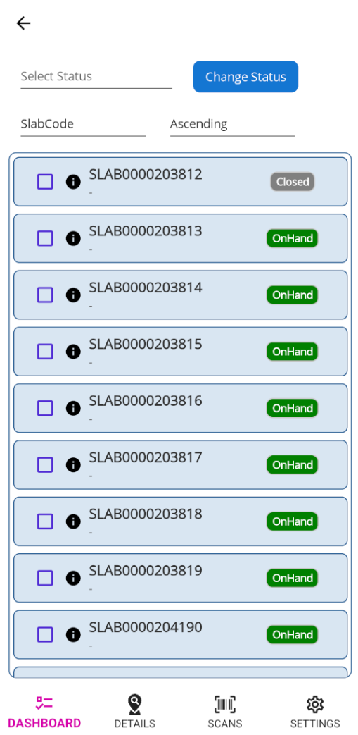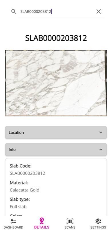Plus, tSync allows you to quickly update the status of your slabs (e.g., changing status from 'In Stock' to 'Sold') right from the device.